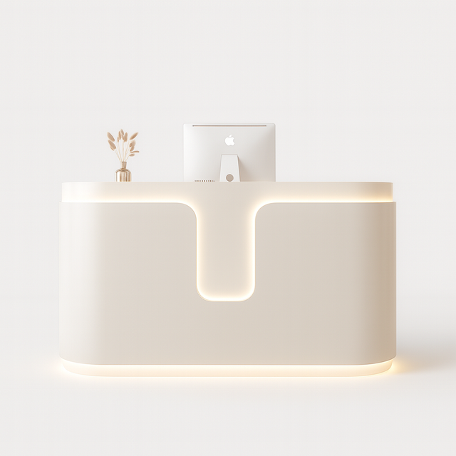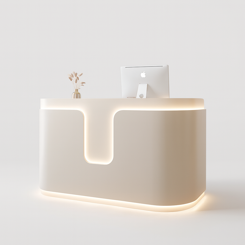 This desk is more than just beautiful — it’s built for functionality, offering a professional and welcoming workspace that keeps cables hidden and work areas clutter-free. The soft backlit glow enhances ambiance, especially in luxury salons, clinics, and wellness spaces.