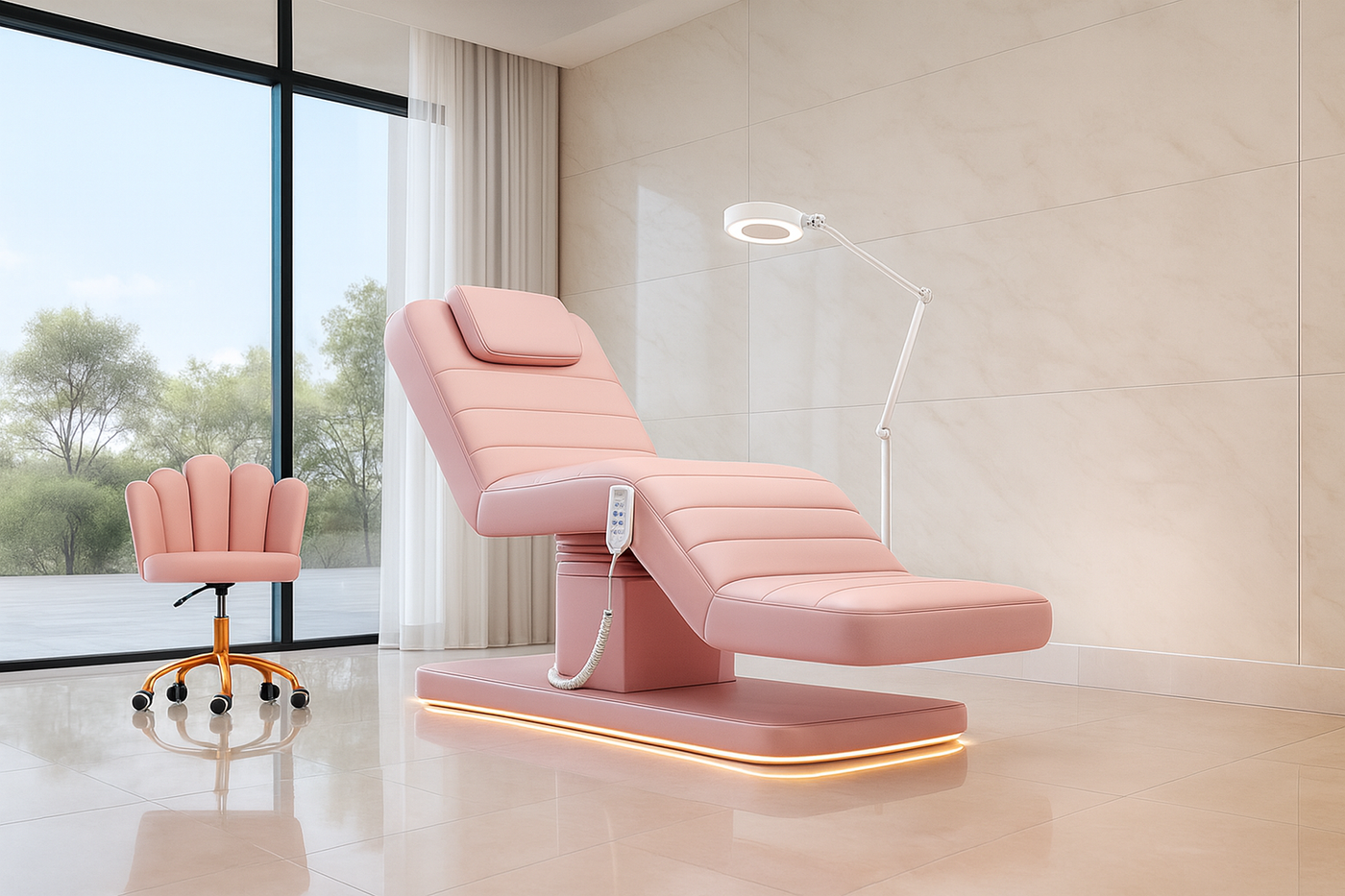 Comfortable and mobile, styled to complement the lash bed for a cohesive professional setup.